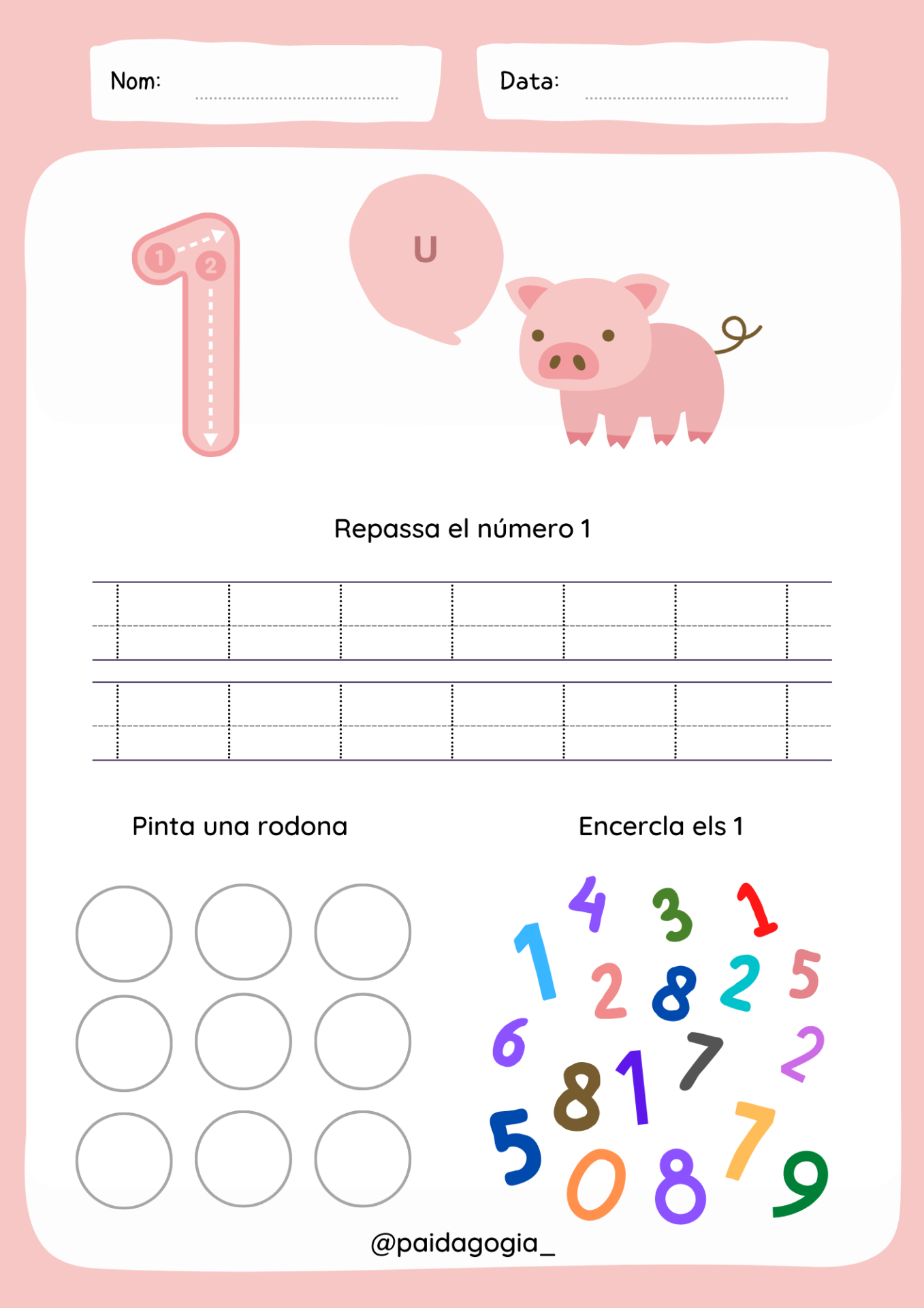 Fichas para trabajar los números del 1 al 9.